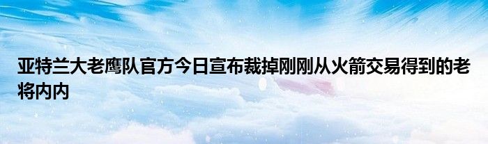北京時(shí)間2月6日,亞特蘭大老鷹官方今日宣布裁掉剛剛從火箭交易得到的老將內(nèi)內(nèi),此舉可能是為了為后續(xù)交易騰出陣容名額。