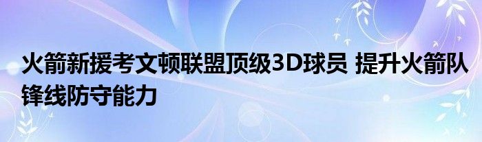 考文頓是當今聯盟里最頂級的鋒線3D球員,火箭得到他會很好的改善鋒線攻防問題,塔克終于有了一個合格的幫手。