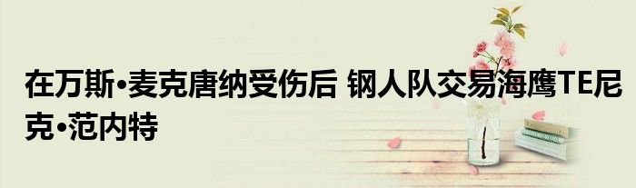 ESPN的亞當(dāng)·謝弗特(Adam Schefter)報道,匹茲堡鋼人隊正在與西雅圖海鷹隊(Seattle Seahawks)達成一筆交易,以換取緊身的尼克·凡內(nèi)特(Nick Vannett)。