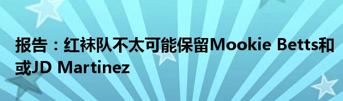 波士頓環球報的Alex Speier報道說紅襪隊不太可能留住外野手Mookie Betts和/或DHJD Martinez。今年冬天可能會有一個或兩個交易。據稱最近簽約投手,紅襪隊據稱沒有薪資靈活性克里斯Sale和內森·埃瓦爾迪。