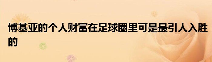 提起有錢的足球運動員,有人說是C羅,也有人說是梅西,現在兩人職業生涯的累計收入都超過了10億美元。比起99.99%的球員來說,他們確實是富可敵國。但是對于一名叫博法伊克-博爾基亞的足球運動員來說,C羅和梅西這點財富只能是毛毛雨,據說他現在的身價達到160億英鎊(折合200億美元),這樣看來C羅和梅西這點財富真沒法跟人家比。
