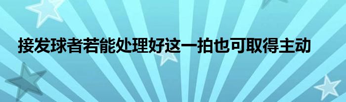 接發球雖然處于被動、等待的狀態,但由于發球時受到規則諸多的限制,使發球不能給接發球者帶來太大的威脅。發球者發球只能發到對角線的接發球區內,而接發球者只需防守半個不到區域,卻可還擊到對方整個場區。所以,接發球者若能處理好這一拍,也可取得主動。