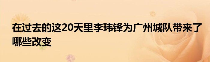 9月18日是李瑋鋒接任廣州城隊主教練滿20天的日子。在過去的這20天里,李瑋鋒為廣州城隊帶來了哪些改變?
