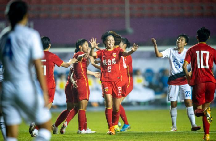 在連續丟失三球以后,中國女足的戰術完全被打亂,只能夠憑借著頑強的防守鞏固球隊的后防線,直到上半場比賽結束以后,中國女足以0:3的比分暫時落后。經過中場調整以后,中國女足在下半場比賽開始5分鐘發起進攻,李夢文在右路突破到底線以后將球傳到門前,肖玉儀在點球點通過頭球頂入球門死角,幫助中國女足扳回了一分。