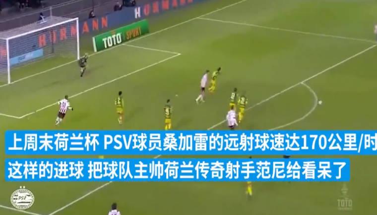 剛剛結束的荷蘭杯比賽,Psv埃因霍溫隊球員桑加雷在禁區外一腳爆射成功破門,這個射球的時速達到了170公里每小時,從畫面上來看整個進球都攜帶一團拖影,如果不知道還認為這個進球是個特效,主教練范尼當場看到這個射球滿臉的不可思議,雙手爆頭滿臉的不可置信,本場比賽結束之后埃因霍溫隊3比1成功戰勝海牙,取得了荷蘭杯的勝利。