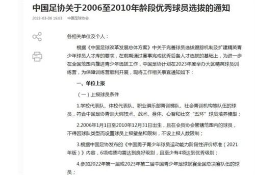 根據最新的足協運動員選拔標準來看,此次選拔的球員在上報的時候,六項成績必須要達到良好的級別,而且有四項成績需要達到優秀的級別。該球員所代表的球隊需要是參加2022年或2023年會員協會當地最高水平賽事并且取得這個賽事前八名的成績,或者是參加過2023年中國足球協會青少年錦標賽的重點賽事,并且在該賽事當中有較為突出的成績。