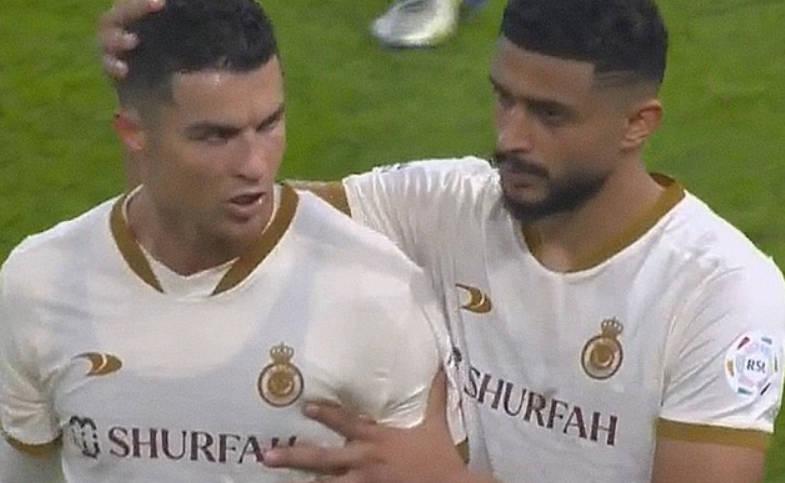 現場隊員們看到C羅心情不佳,紛紛的都會安慰C羅,但是C羅沒有理會任何人,只是憤怒的向球員通道走去。在球員通道門口一腳踢上5瓶水,5瓶水當中2瓶直接被C羅踢飛,將自己心中的郁悶情緒全部的發泄。