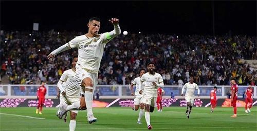 比賽開場第10秒鐘,禁區(qū)左側(cè)納吉拿球橫切將球推射進球網(wǎng)當中,幫助球隊拿到一分,場上比分為1:0。第14分鐘利雅得球隊拿到任意球機會,C羅主罰任意球,球打在人墻上彈出,隊友做出補救,但是并沒有幫助球隊拿到分數(shù)。第21分鐘科南左路傳中,哈巴利中路包抄將球打進球網(wǎng),利雅得再拿一分,場上比分改為2:0。