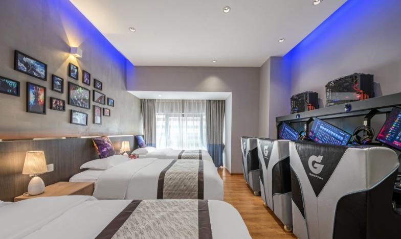 其實電競酒店誕生至今雖說時間比較短,但是已經經歷了很多次的換代,從最初的傳統酒店加上幾臺電腦的配置,到后來專門根據一些熱門的游戲劃分出不同的房間,再者現在的電競酒店還創新出很多的消費場景,比如電競酒店加密室逃脫,電競酒店加劇本殺,電競酒店加游戲IP這些形式。
