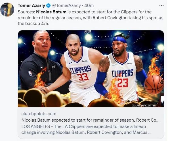 快船隊(duì)在與公牛隊(duì)的比賽中大勝,其中尼古拉斯-巴圖姆的三分球表現(xiàn)備受矚目。據(jù)記者Tomer Azarly報(bào)道,巴圖姆將繼續(xù)擔(dān)任快船隊(duì)的先發(fā)球員,而科溫頓則成為巴圖姆的替補(bǔ)。此外,戈登也展現(xiàn)出了自己的實(shí)力,以55.6%的三分命中率拿下了22分和3次助攻,成為巴圖姆之后快船隊(duì)的又一得力射手。