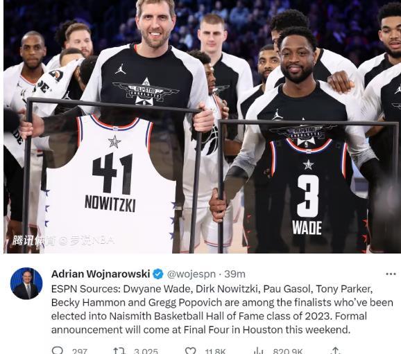 北京時間3月29日,韋德、諾維茨基、保羅-加索爾、帕克、哈蒙和波波維奇確定入選2023年奈史密斯籃球名人堂。