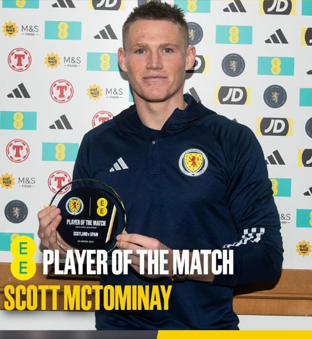 在比賽的第7分鐘,麥克托米奈利用羅伯遜的倒三角回傳,掃射入網(wǎng),打開了比分。在下半場的第51分鐘,他左腳凌空掃射得手,為蘇格蘭隊(duì)鎖定勝局。