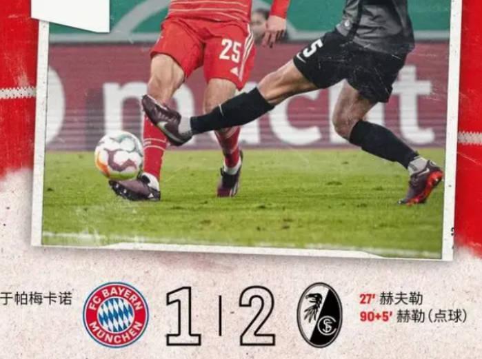北京時間4月5號凌晨2:45,德國杯1/4決賽也正式打響,對戰的兩支球隊分別是拜仁慕尼黑和弗賴堡。拜仁將會主場對戰弗賴堡客場。兩支球隊經過激烈的角逐,在賽事結束的時候,拜仁以1:2的分數輸掉了這場比賽,無緣晉級德國杯的4強比賽,這也是圖赫爾擔任拜仁主帥之后第1次失敗。