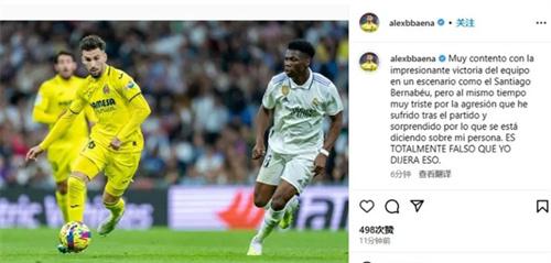 近日,比利亞雷亞爾的中場球員阿萊士巴埃納,通過個人媒體針對剛發(fā)生的巴爾韋德襲擊事件做出了回應(yīng),他聲稱,球隊在伯烏納球場取得勝利是非常讓人感覺到開心的事情,同時自己在這一次比賽之后遇到了襲擊讓人感覺到難過,外界對于我這個人的評價更是讓人震驚,對于外界的這些言論,我再次表明他們的說法都是完全不正確的。