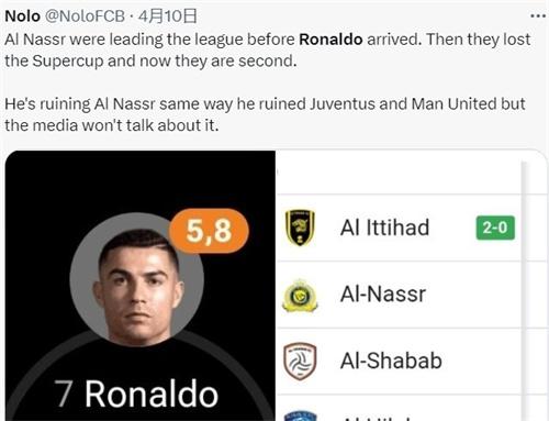 有一些球迷在社交平臺發布個人的看法,認為C羅在加盟利雅得勝利之前,利亞的勝利在各項排名和積分都是位于榜首位置的,而現在卻以三分的分差落后了其它聯合,并且認為這就是C羅所帶來的效應。而另一位球迷也表示在 C羅加盟之前利亞的勝利在聯賽當中一直都是處于連跑的位置之后超級杯失敗,而現在聯賽對戰時卻排在了第二的位置, C羅當前是在同樣以將曼聯、尤文毀掉的方式,將利雅得勝利也再次毀掉,在媒體方面,對于這一點卻根本不會談論。
