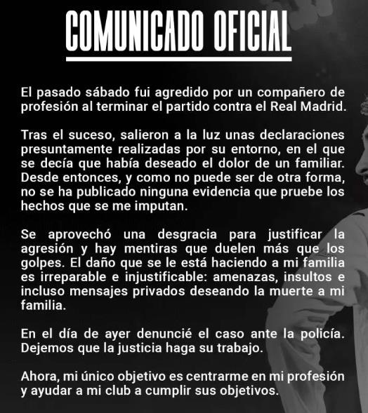 此外,巴埃納還提到自己和家人遭受到了來自皇馬球迷的網暴,包括威脅、辱罵甚至生命威脅。他表示自己已經報警,同時呼吁大家等待有關部門的處理。