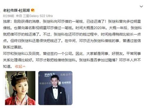 北京時間4月14日,有相關記者發(fā)文透露張繼科在之前確實向鄧莎借過一筆錢,不過目前這筆賬單已經(jīng)全部還清,這件事情是發(fā)生在2020年,張繼科向鄧莎借錢,并表示一年之后還清,不過由于張繼科的這一筆欠款拖了比較長的時間,鄧莎之前還像張繼科的女朋友景甜詢問過這件事情,據(jù)了解,鄧莎和張繼科曾經(jīng)簽約過同一個公司,兩個人既是同事也是好友,平時關系都是相當不錯,所以鄧莎才會將錢借給張繼科,但鄧莎本人并不知曉張繼科是否涉嫌賭博。