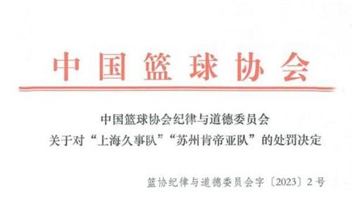 4月17日中國籃球協(xié)會的官方微博也發(fā)布了對于上海久事隊和蘇州肯帝亞這兩支隊伍在處罰方面的決定,這也是史上最嚴的一個罰單,給中國眾多男籃球隊都敲響了一個警鐘。