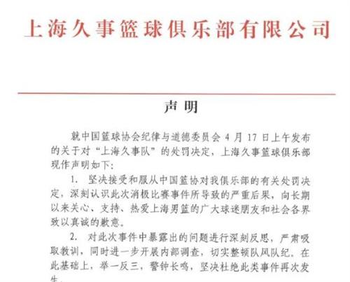 北京時間4月17號中國籃球協會紀律和道德委員會公布了對于本屆CBA季后賽12進8的這場賽事處罰決定。蘇州肯帝亞隊和上海久事隊在第2場以及第3場比賽中都出現了消極比賽的情況,經過核實之后上海久事隊和蘇州肯帝亞隊都被取消了本賽季CBA季后賽的名次以及參賽資格,同時還核減聯賽經費500萬元,兩支籃球俱樂部的主帥包括籃球俱樂部的總經理都被禁賽。