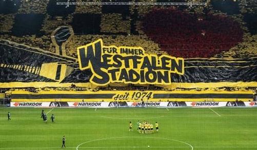 4月20日,多特球迷在球隊上一場主場比賽前打出了一幅慶祝主場“威斯特法倫”的TIFO,以捍衛球場的名稱。自2005年以來,多特的主場名稱被冠名商“伊杜納信號”更改為“伊杜納信號公園球場”,并且雙方的合作至少將持續到2031年。然而,冠名商對球迷TIFO的做法表達了不滿,這引發了球迷的激烈反擊。