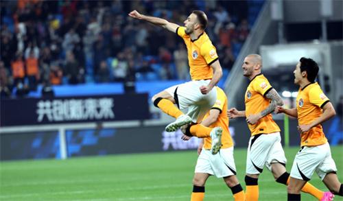海牛在比賽開始之后的陣容是532,采用穩守反擊的陣型,面對表現不佳的國安他們的進攻趨勢很猛烈,一次一次地破門引來全場球迷的歡呼,現場的氣氛很活躍。比賽開始7分鐘,恩家德烏手球送點,海牛的外援薩里奇點球破門,幫助海牛率先拿到領先優勢,第24分鐘劉軍帥傷退,沙一博替補,第26分鐘,海牛外援安德烈耶維奇遠射進球,幫助海牛擴大比分,隨后海牛開始嚴防死守穩固防守,國安沒能成功進球,直至上半場結束。