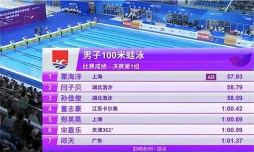 自從潘展樂在男子100米仰泳打破亞洲區域該賽事的記錄后,中國蛙泳寫在全國游泳冠軍賽中迎來了爆發的時刻,全國游泳冠軍賽男子100米蛙泳決賽,覃海洋利用57秒93的成績輕松打破了亞洲該賽事的記錄,原先的記錄是閆子貝創下的58秒63的戰績,這一次覃海洋刷新了這個記錄,可以說在整個賽事中都是有著炸裂的表現,更是依靠該成績位居今年世界第一名,成為歷史上第三個在男子100米蛙泳項目當中進入58秒的人。