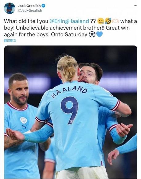 在比賽中,哈蘭德表現出色,不僅進球,還送出了關鍵的助攻。賽后,曼城球星格拉利什在社交媒體上分享了他和哈蘭德的慶祝照片,并贊揚了他的搭檔:“哈蘭德,多么棒的小伙子!這是令人難以置信的成就,兄弟!我們又一次大獲全勝!現在專注于周六的比賽。”
