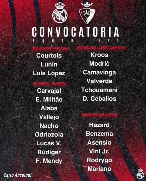 皇馬官方公布了國王杯決賽對戰奧薩蘇納的大名單,本澤馬與維尼修斯領銜,莫德里奇在列。這場比賽是皇馬本賽季最后一次爭奪冠軍的機會,他們將全力以赴,爭取為球隊贏得這一榮譽。