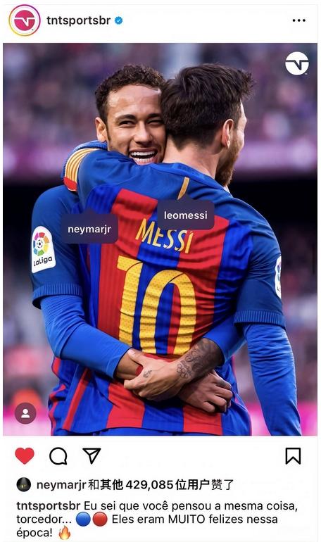 雖然對于巴薩的財務狀況而言,內馬爾回歸巴薩完全不現(xiàn)實,但這不妨礙球迷們對于這種美好的期待。此外,內馬爾點贊也表達了對梅西的聲援,以及充分展示了自己也與巴黎不睦的事實。