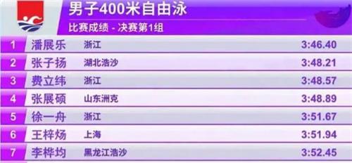 潘展樂在此次比賽當中發揮的成績可以說十分出色,這樣的成績,即便是放在世錦賽仍舊是能夠達到A級標準,本場比賽除了潘展樂之外,楊子洋在最后的50米開始奮力直追,最終是成功追上了費立緯,利用三分48秒21的成績拿到該賽事的亞軍,費立緯在本場比賽獲得了第三名,張展碩在最后的時刻險些逆轉局勢超過費立緯,不過仍舊是排列在第四名。