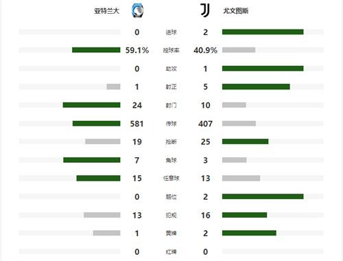 尤文圖斯在本場比賽拿下2比0,經歷了四輪不勝之后,首次拿下兩連勝,目前球隊的積分已經超拉齊奧球隊兩分,上升到意甲聯賽得第二名,亞特蘭大球隊終止了聯賽的三連勝,不過仍舊是以凈勝球的優勢壓過了羅馬,在聯賽當中排名第六位的成績,此次比賽,尤文圖斯的兩個進球是有些幸運,本場比賽總共有十次進球機會,就成功拿到了兩個進球,反而對方完成24次射門,均沒有擊中球門。