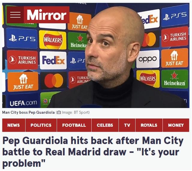 在歐冠半決賽首回合比賽中,曼城客場1-1戰(zhàn)平皇馬。賽后,曼城主帥瓜迪奧拉接受了采訪。他表示,這是一場足夠緊張的比賽,在半決賽對戰(zhàn)皇馬總是很艱難,兩隊的最終結(jié)果將留待下星期的伊蒂哈德之戰(zhàn)才會揭曉。而當(dāng)被問及專家和球迷期待著看到一場曼城橫掃式的勝利的話題時,瓜迪奧拉則選擇回懟,稱這是人們的問題,皇馬比任何人都更了解這場比賽。