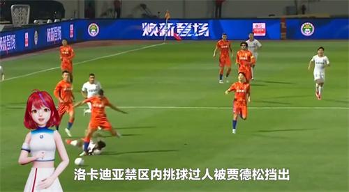中超聯(lián)賽第七輪比賽,泰山隊客場對戰(zhàn)滄州雄獅,賈德松在禁區(qū)內(nèi)手球經(jīng)過裁判的慢鏡頭回放判罰點球,后續(xù)洛卡迪亞打進(jìn)這個點球,成功幫助球隊拿到比分。這場比賽踢了僅僅七分鐘左右,洛卡迪亞在禁區(qū)內(nèi)就因為挑球過人被對方攔下,隨后洛卡迪亞示意裁判賈德松在此次攔阻過程中手球,比賽暫停中斷之后,主裁判觀看慢鏡頭確定改判點球。