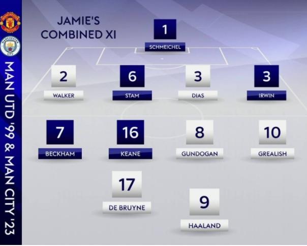 而卡拉格也進行了同樣的評選,他的陣容中門將位置同樣被舒梅切爾占據。后衛線上,卡拉格選擇了曼城的沃克和迪亞斯,搭配曼聯的斯塔姆和埃爾文。中場則是貝克漢姆、基恩、京多安和格拉利什。最后,前鋒線上是曼城的德布勞內和哈蘭德。卡拉格的陣容中有兩名曼城球員入選,體現了他們在23年時期的優秀表現。
