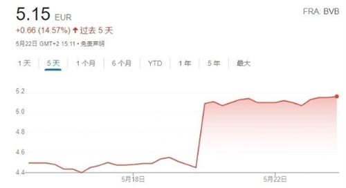 這一好消息不僅僅在足球領域引起了關注,財經網站investing.com的數據也顯示出多特蒙德的股價在戰勝奧格斯堡后迅速上漲。據數據顯示,在過去的5天里,多特蒙德的股價上漲了14.57%。