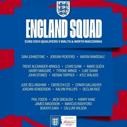 北京時間5月25日,英格蘭公布了最新一期的大名單,凱恩領銜,阿諾德和馬奎爾也在其中,而布萊頓的后衛鄧克和水晶宮的中場埃澤也獲得了入選機會,然而斯特林和本-懷特卻未能入選。