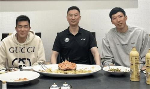 劉維偉指導在社交媒體上曬出了一張合影,他自己坐在中央,周琦和郭艾倫分別坐在左右兩側(cè)。三人面對鏡頭,笑容滿面,中間似乎還有一只龍蝦,他們看起來非常開心、盡興。而這兩位球員難道不就是楊鳴最想要的兩名球員嗎?