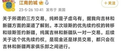 最后是瓊斯加盟新疆男籃的消息。有關這個轉會的報道中提到了三方交易和周琦的轉會問題,但媒體人“江南的城”通過個人社交媒體透露,瓊斯的加盟并不涉及其他因素,這使得關于三方交易的傳言不攻自破。有些自媒體通過制造謠言獲取流量,他們應該受到嚴懲,而不是以戲弄球迷的方式在社交媒體上活躍。