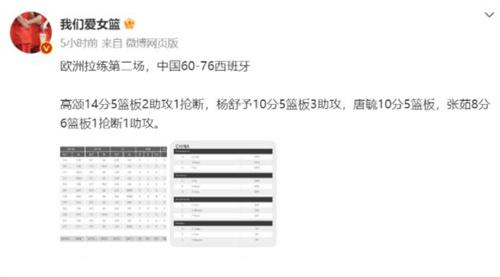 北京時間5月27日,中國女籃迎來了歐洲拉練賽的第二場比賽,對手是實力強大的西班牙隊。經過四節的較量,中國隊以60-76慘敗對手,未能延續勝利勢頭,錯失了連勝的機會。