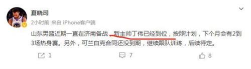 北京時間5月27日,據山東媒體人夏曉司透露,山東男籃近期一直在濟南備戰,新任主帥丁偉已經上任,并計劃在下個月進行2到3場熱身賽。同時,目前可蘭白克的合同尚未到期,他將繼續參與隊內訓練,后續安排待定。