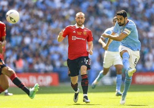 本場和曼聯的足總杯決賽,京多安再次成為球場上的絕對主角。僅僅開場15秒,京多安直接凌空抽射入死角,打破了比賽的僵局。盡管曼聯隨后通過點球扳平比分,但下半場伊始,京多安再次站了出來,他以一記左腳凌空彈射攻入制勝球。除了兩個進球外,京多安還有兩次關鍵傳球。