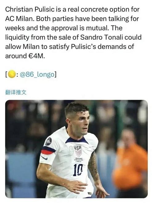 據最新消息,美國隊長普利西奇轉會米蘭的可能性越來越大。轉會費預計在1500萬至2000萬之間,而他將獲得400萬的年薪。