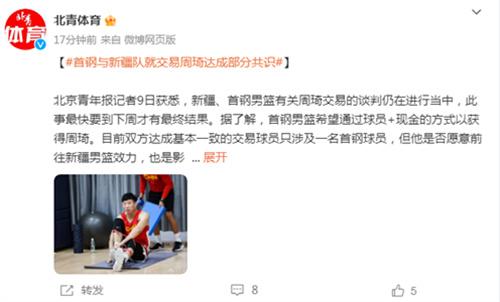 7月9日,上海男籃已經基本退出了周琦的爭奪之戰,北京男籃成為周琦最為熱門的下家歸屬。根據報道新疆男籃和北京男籃最終的共識是,對周琦作出交易的主體需要一位球員和現金,談判的過程仍然在不斷進取,盡管交易哪位球員是未知的,但目前曾凡博和范子銘是兩位是較為熱門的候選人選。