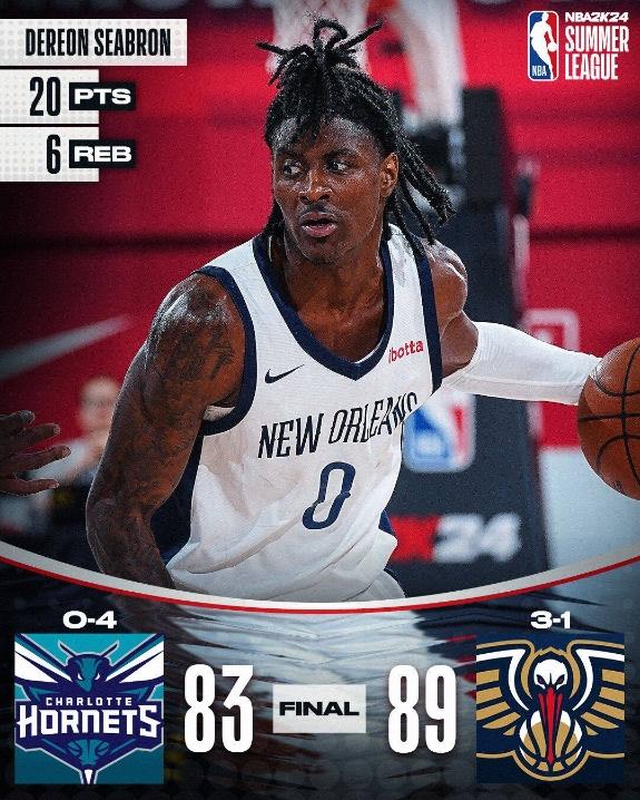 黃蜂以83-89不敵鵜鶘(榜眼秀布蘭登-米勒沒有出場)。
