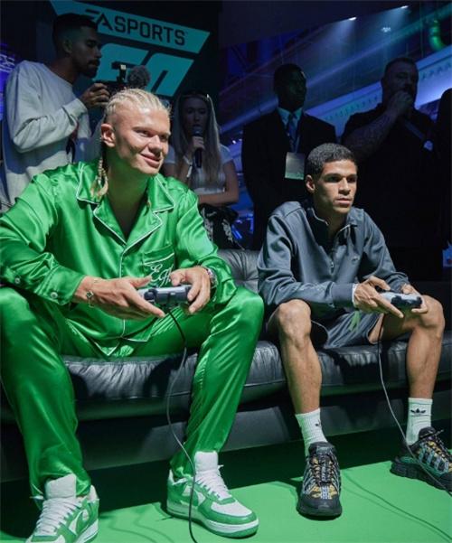 7月14日,哈蘭德作為某游戲封面的明星之一,出席了游戲發布會。與貝林厄姆、恩佐·費爾南德斯、威尼修斯和拉什福德等球星一同登上了封面,但哈蘭德成為眾人矚目的焦點。他身穿綠色睡衣,胸前口袋上縫著名字的縮寫。他與德羅巴、路易斯·菲戈、羅納爾迪尼奧以及一些女足傳奇球星共同參加了活動。甚至國外說唱歌手斯托姆茲也現身與哈蘭德合影。