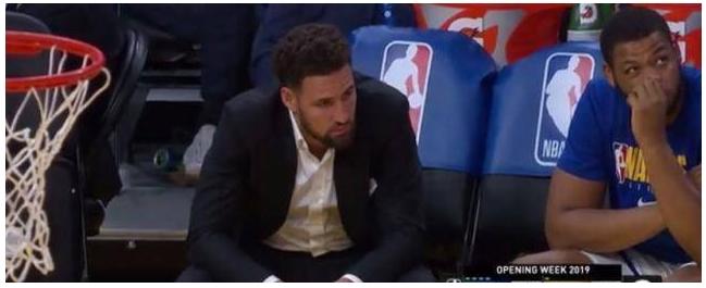 庫里就這樣坐在替補席上,臉上帶著苦笑,充滿無奈的神情,真的太艱難了。除了庫里沮喪之外,其他隊員的臉色也不好看。尤其是克萊,他滿臉失落,穿著西裝坐在場邊,看著球隊慘敗,這樣的心情實在令人心痛。克萊沒有一絲笑容,只是呆呆地坐著,神情異常失落。