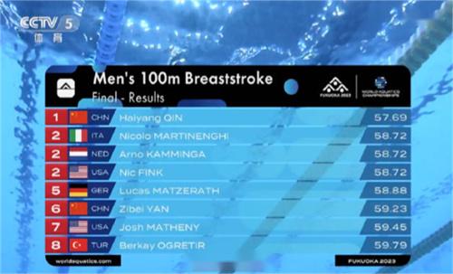此前,覃海洋在全國(guó)冠軍賽上就游出了57秒93的成績(jī),他絕對(duì)稱得上是100米蛙泳項(xiàng)目的王者。在本屆世錦賽的預(yù)賽上覃海洋成績(jī)是58秒26。在半決賽上覃海洋的成績(jī)是57秒82,這兩輪比賽他都獲得了很大的優(yōu)勢(shì)排名。一路晉級(jí)暢通無(wú)阻,也創(chuàng)造了一個(gè)新的亞洲紀(jì)錄,另一位中國(guó)名將閆子貝在半決賽的成績(jī)是59秒02,在決賽的成績(jī)是59秒23,獲得第六名。