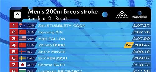 北京時間7月27日,在日本地區(qū)福岡舉行的世錦賽比賽當中,男子兩百米蛙泳半決賽,中國選手覃海洋代表中國隊出戰(zhàn)。這場比賽對于他本人而言也是十分的輕松,成功的以2分07秒70的成績晉級到了200m蛙泳的總決賽,進入到?jīng)Q賽以后,他的目標是沖擊第四個金牌。他之前已經(jīng)拿下了三塊金牌,分別是100m蛙泳和男女4×100混合接力以及50米游泳比賽,值得一提的是,另外一名選手董志豪也成功的晉級了總決賽,并且他的記錄是創(chuàng)造了青年世界紀錄,值得祝賀。