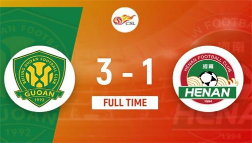 最終比賽結束,北京國安3-1戰勝河南隊拿下3分。