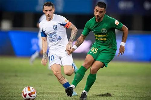 第26分鐘,武漢三鎮(zhèn)在前場連續(xù)組織進攻,馬爾康在隊友的配合下進行了兩次攻門,先后被浙江隊的后防球員直接封堵。